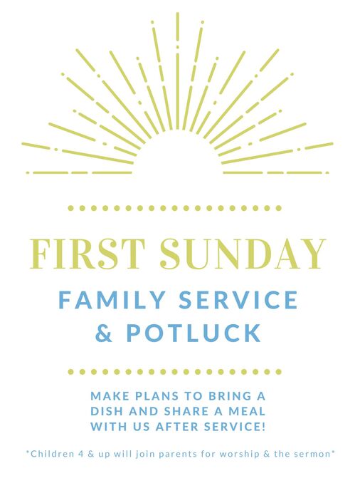 We also have a family service once a month followed by a church potluck on the 1st Sunday of the month. Children 4 & up join their parents for worship and the sermon.